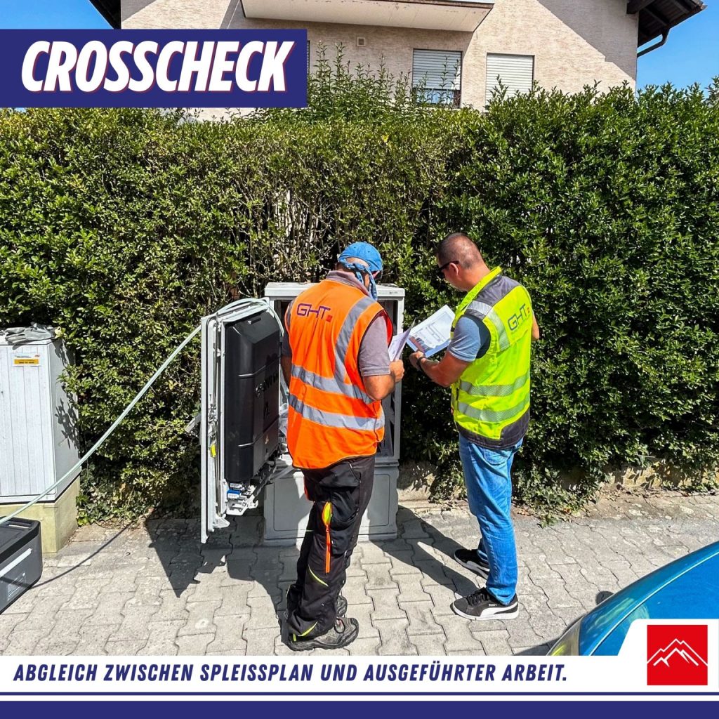 Nach dem Einblasen des Kabels folgte der Crosscheck โ ein Verfahren, das aus der Luftfahrt bekannt ist. Dabei schauen immer zwei Personen unabhรคngig voneinander รผber die Arbeit: Der eine fรผhrt die Kontrolle durch, der andere prรผft anschlieรend nochmals nach. Unser Bereichsleiter fรผr LWL & Netzmontage, Samet ลEN, war persรถnlich vor Ort und hat den Crosscheck gemeinsam mit den Kollegen durchgefรผhrt.